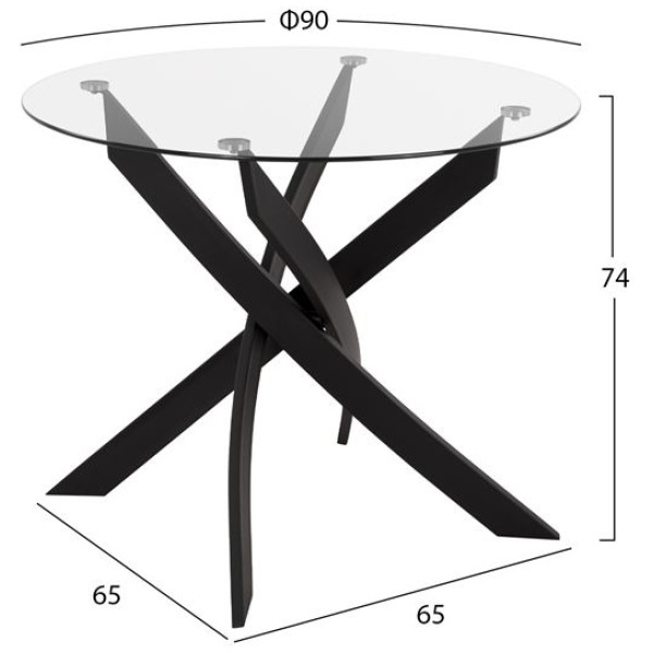 ΗΜ11095.01—Σετ εσωτερικού χώρου με στρογγυλό τραπέζι με επιφάνεια από διάφανο γυαλί ασφαλείας και μεταλλικά πόδια με μοντέρνα γεωμετρία σε μαύρο