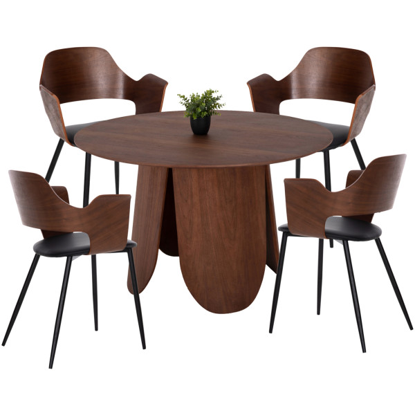 Αυτό το σετ τραπεζαρίας εσωτερικού χώρου αποτελείται από ένα τραπέζι DENTY και 4 καρέκλες DELF. Το DENTY είναι ένα στρογγυλό