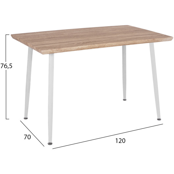 ΤΟ ΣΕΤ ΠΕΡΙΛΑΜΒΑΝΕΙ: Ένα ορθογώνιο τραπέζι με ΛΕΥΚΑ μεταλλικά πόδια με ρεγουλατόρους, και επιφάνεια από MDF σε SONAMA χρώμα, και