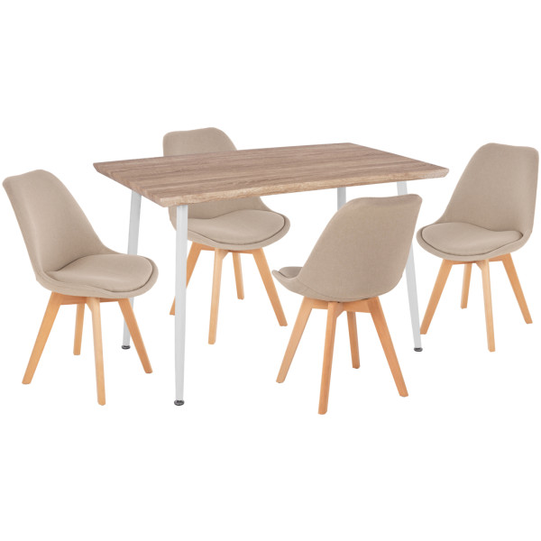 ΤΟ ΣΕΤ ΠΕΡΙΛΑΜΒΑΝΕΙ Ένα ελκυστικό μοντέρνο τραπέζι με επιφάνεια από mdf σε λευκή απόχρωση και πόδια από μασίφ ξύλο οξιάς.