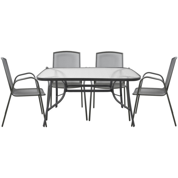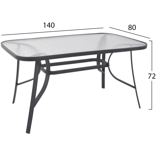 ΤΟ ΣΕΤ ΠΕΡΙΛΑΜΒΑΝΕΙ Ένα τραπέζι μεταλλικό εξωτερικού χώρου σε χρώμα γκρι-ανθρακί, με ενσωματωμένο τζάμι ασφαλείας (secure) Διαστ. Τραπεζιού: 140x80x72 εκ.