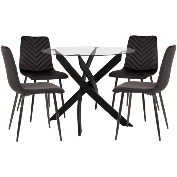 ΤΟ ΣΕΤ ΠΕΡΙΛΑΜΒΑΝΕΙ Ένα τραπέζι μεταλλικό εξωτερικού χώρου σε χρώμα γκρι-ανθρακί, με ενσωματωμένο τζαμί ασφάλειας (secure). Διαστ. Τραπεζιού: Φ70×72 εκ.
