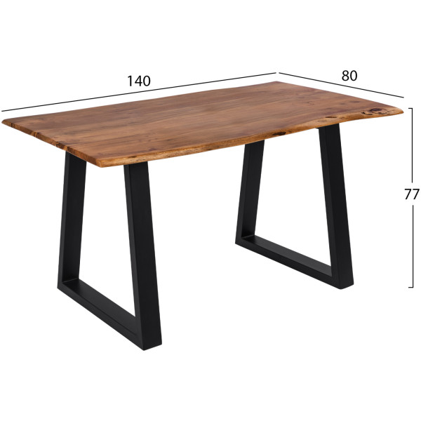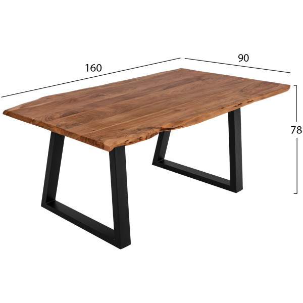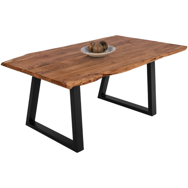 Ανακαλύψτε το μοναδικό χειροποίητο τραπέζι με τη φυσική μασίφ ξύλινη επιφάνεια ακακίας! Ως ιδιαίτερο χαρακτηριστικό, οι άκρες του τραπεζιού επεξεργάστηκαν