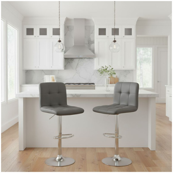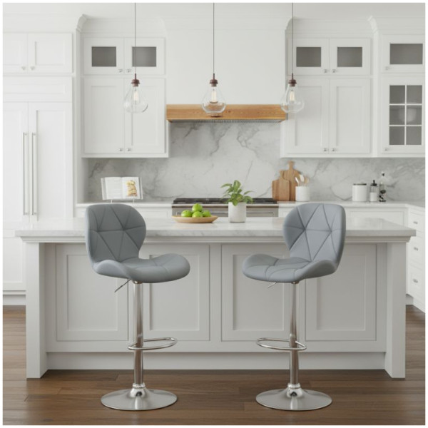 Σκαμπό μπαρ Carmelo Megapap με ρυθμιζόμενο ύψος από τεχνόδερμα χρώμα γκρι – βάση χρωμίου 45x42x90/113εκ. Δώστε στιλ και λειτουργικότητα στον χώρο σας με το