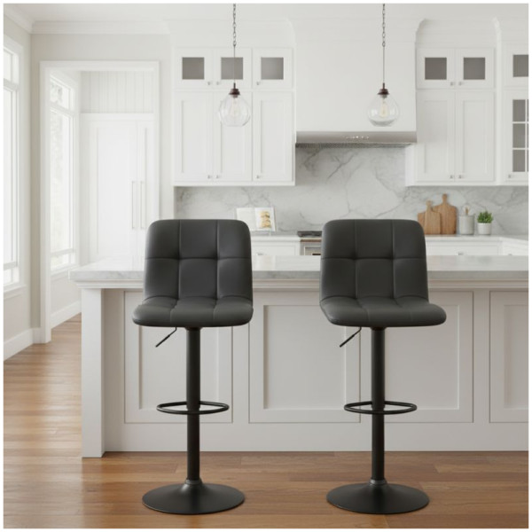 Σκαμπό μπαρ Carmelo Megapap με ρυθμιζόμενο ύψος από τεχνόδερμα χρώμα μαύρο – βάση μαύρο ματ 45x42x90/113εκ. Δώστε στιλ και λειτουργικότητα στον χώρο σας
