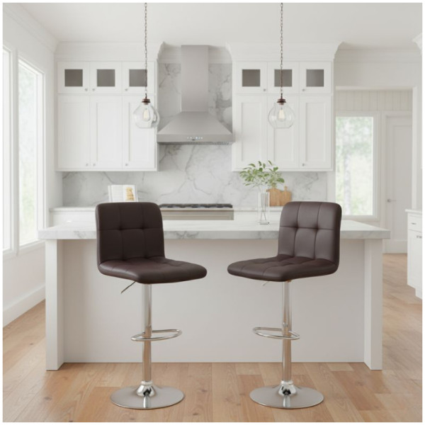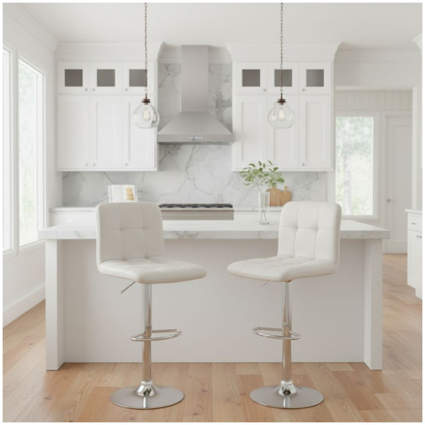 Σκαμπό μπαρ Carmelo Megapap με ρυθμιζόμενο ύψος από τεχνόδερμα χρώμα λευκό – βάση χρωμίου 45x42x90/113εκ. Δώστε στιλ και λειτουργικότητα στον χώρο σας με το