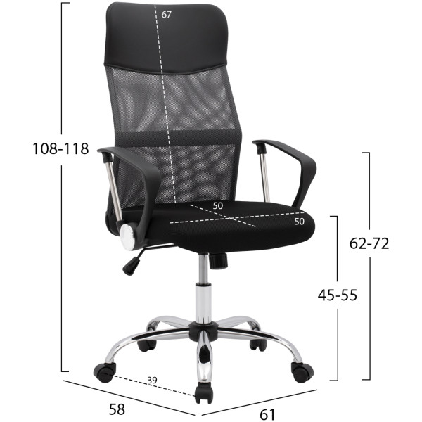 ΗΜ1057.11–Διευθυντική καρέκλα γραφείου σε ΜΑΥΡΟ χρώμα. Μια «πλούσια» και επιβλητική καρέκλα γραφείου με αναπαυτικά μπράτσα με εργονομική κλίση επενδυμένα με