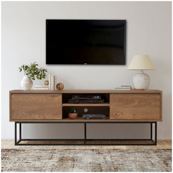 Έπιπλο τηλεόρασης Amedeo Megapap από μελαμίνη χρώμα καρυδί 180x40x50εκ. Ο κλασσικός αλλά και παράλληλα μοντέρνος σχεδιασμός του επίπλου τηλεόρασης Amedeo είναι σίγουρο