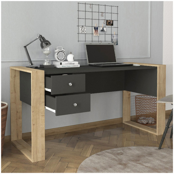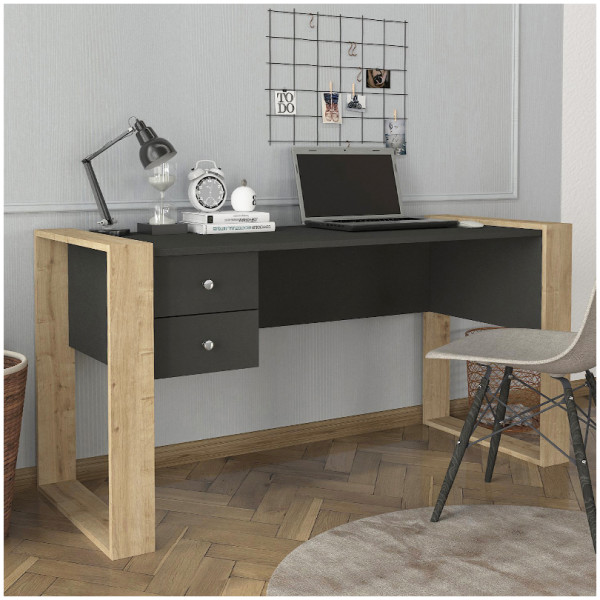 Γραφείο εργασίας Fernando Megapap χρώμα ανθρακί – sapphire oak 158,4x60x72,2εκ. Τεχνικά χαρακτηριστικά: Χρώμα: ανθρακί – sapphire oak Διαστάσεις: Μήκος 158,4 x Βάθος 60 x