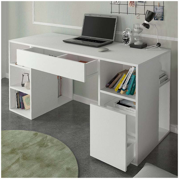 Γραφείο εργασίας Pontus Megapap από μελαμίνη χρώμα λευκό 145x60x74,4εκ. Τεχνικά χαρακτηριστικά: Χρώμα: λευκό Διαστάσεις: Μήκος 145 x Βάθος 60 x Ύψος 74,4 εκ.