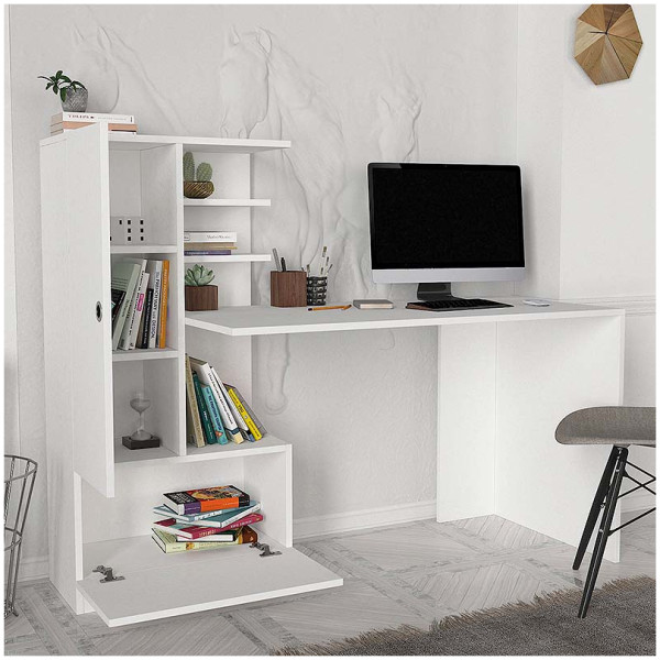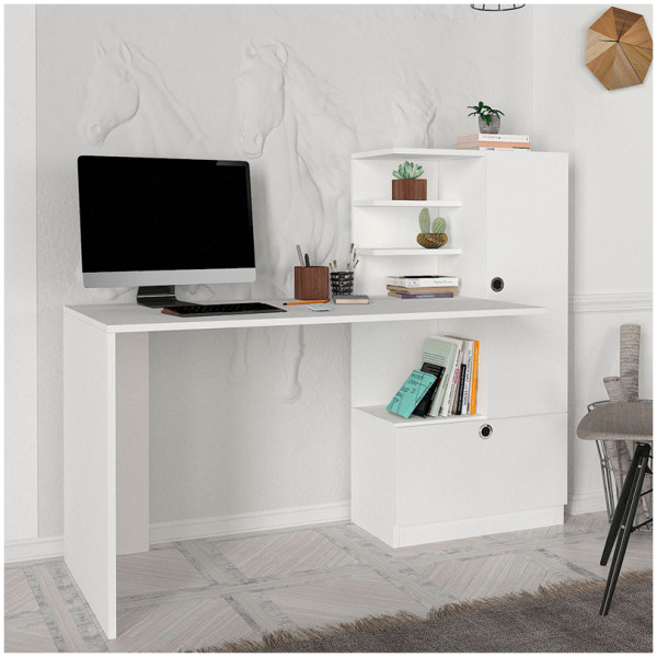 Γραφείο εργασίας Domingo Megapap από μελαμίνη χρώμα λευκό 149,5x60x120εκ. Τεχνικά χαρακτηριστικά: Χρώμα: λευκό Διαστάσεις: Μήκος 149,5 x Βάθος 60 x Ύψος 120 εκ.