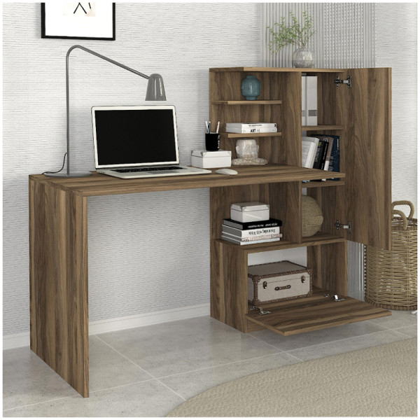 Γραφείο εργασίας πολυμορφικό Badau Megapap από μελαμίνη χρώμα sapphire oak 110×37,2×77εκ. Τεχνικά χαρακτηριστικά: Χρώμα: sapphire oak Διαστάσεις: Μήκος 110 x