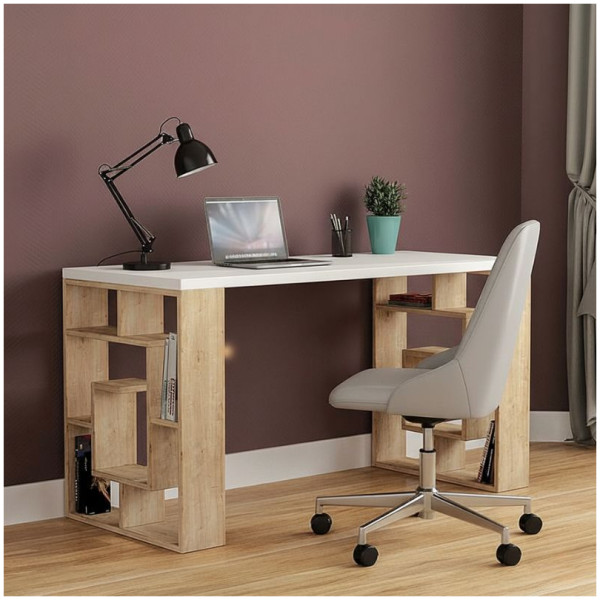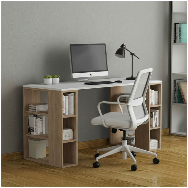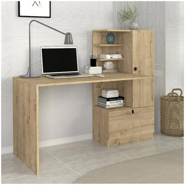 Γραφείο εργασίας Merino Megapap χρώμα sapphire oak 149,5×61,8×120εκ. Τεχνικά χαρακτηριστικά: Χρώμα: sapphire oak Διαστάσεις: Μήκος 149,5 x Βάθος 61,8 x Ύψος 120 εκ. Διαστάσεις γραφείου: