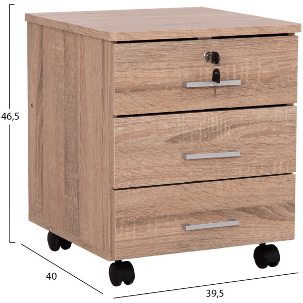Συρταριέρα γραφείου για επαγγελματική χρήση, κατασκευασμένη από ανθεκτική μελαμίνη σε απόχρωση οξιάς με κλειδαριά, σχεδιασμένη για να αποθηκεύεις έντυπα και