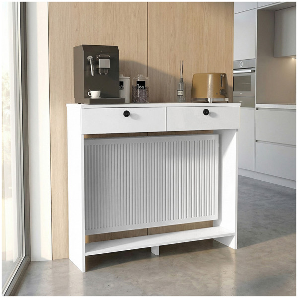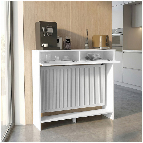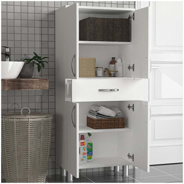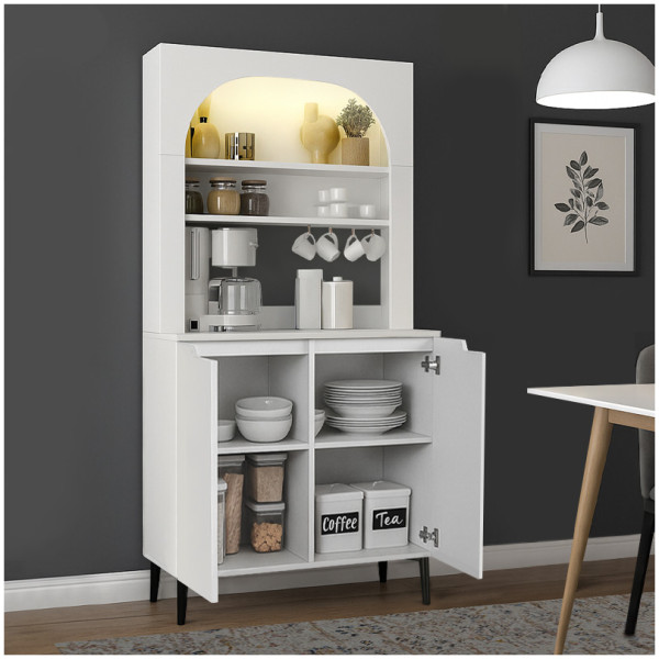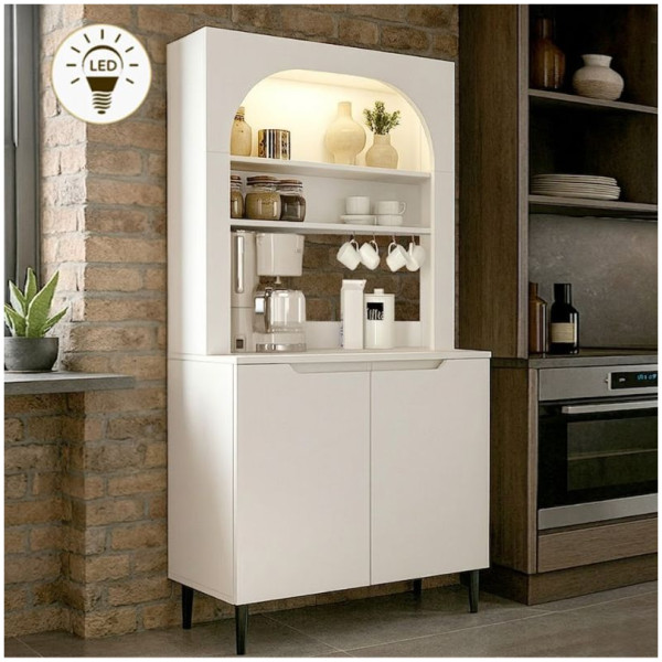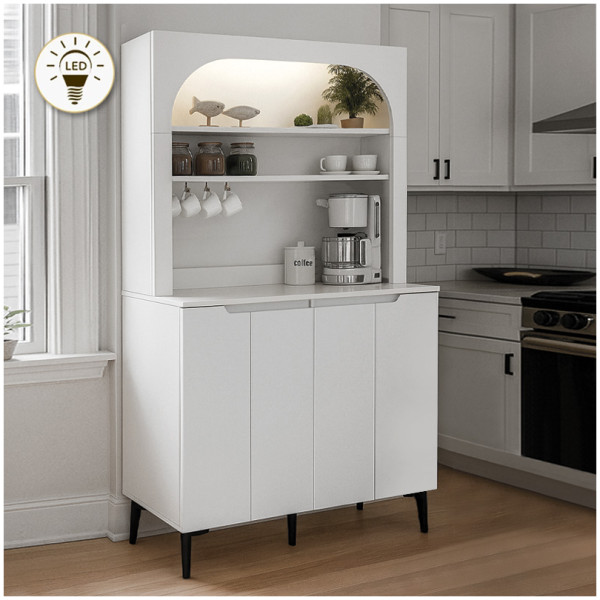 Έπιπλο κουζίνας με LED Melinta 4 Megapap χρώμα λευκό 120x40x181,8εκ. Το έπιπλο κουζίνας Melinta συνδυάζει κομψότητα και λειτουργικότητα, προσφέροντας άφθονο αποθηκευτικό χώρο
