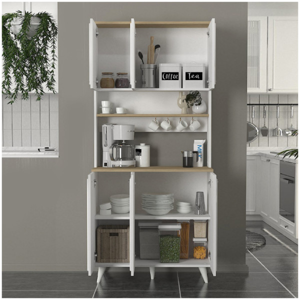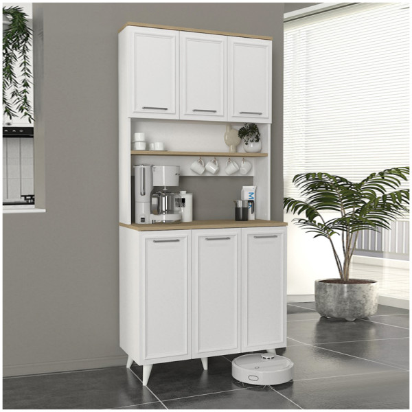 Έπιπλο κουζίνας Potter 3 Megapap χρώμα λευκό – rota oak 90x40x196,1εκ. Το έπιπλο κουζίνας Potter συνδυάζει κομψότητα και λειτουργικότητα, προσφέροντας άφθονο αποθηκευτικό χώρο σε