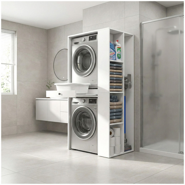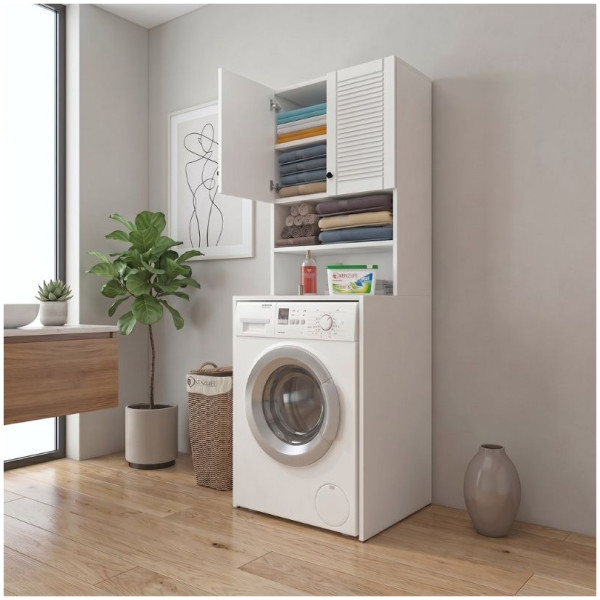 Έπιπλο πλυντηρίου Make Megapap χρώμα λευκό 96x20x180εκ. Τεχνικά χαρακτηριστικά: Χρώμα: λευκό Διαστάσεις: Μήκος 96 x Βάθος 20 x Ύψος 180 εκ. Πάχος μελαμίνης: 18mm.