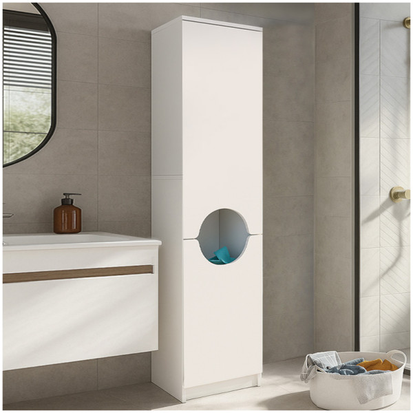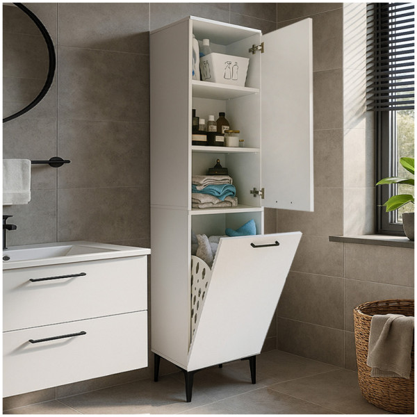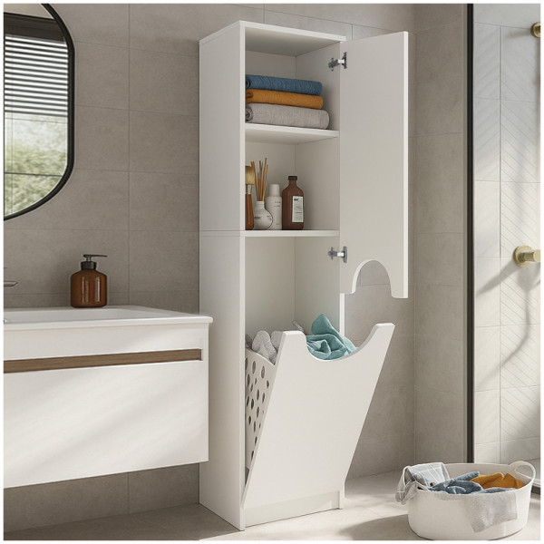 Ντουλάπι με καλάθι απλύτων Verga Megapap χρώμα λευκό 45x40x180εκ. Τεχνικά χαρακτηριστικά: Χρώμα: λευκό Διαστάσεις: Μήκος 45 x Βάθος 40 x Ύψος 180 εκ. Πάχος μελαμίνης: