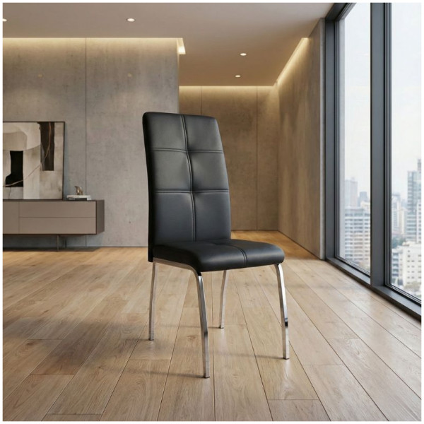 Καρέκλα τραπεζαρίας Alma Megapap μαύρο PU – μεταλλικό πόδι χρωμίου 42x53x97εκ. Η καρέκλα Alma διαθέτει κάθισμα από τεχνόδερμα PU σε μαύρο τόνο και μεταλλικά πόδια χρωμίου,