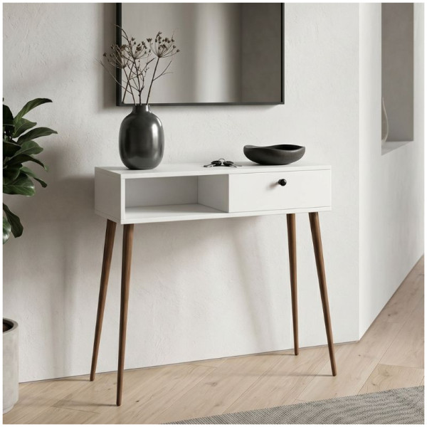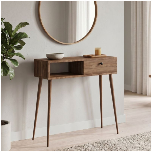 Κονσόλα Napoli Megapap χρώμα καρυδί 90x29x88εκ. Τεχνικά χαρακτηριστικά: Χρώμα: καρυδί Διαστάσεις: Μήκος 90 x Βάθος 29 x Ύψος 88 εκ. Πάχος μελαμίνης: 18mm