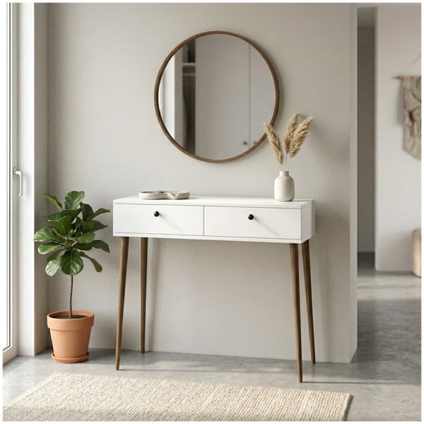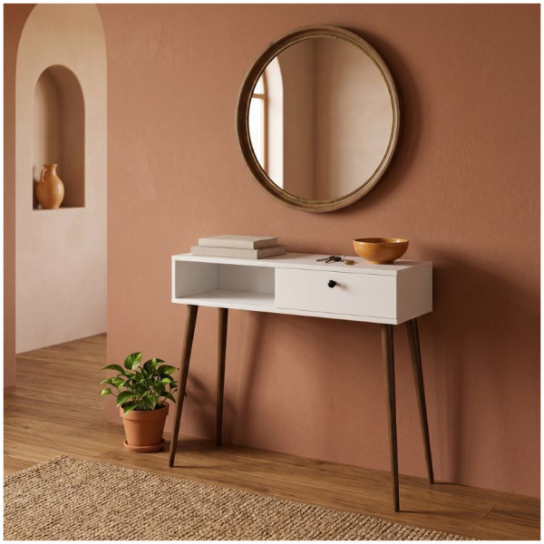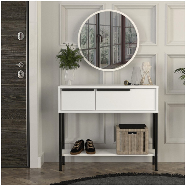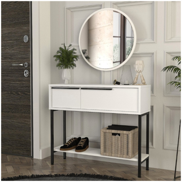 Κονσόλα με καθρέπτη Suzy Megapap χρώμα λευκό 90×29,6×76εκ. Τεχνικά χαρακτηριστικά: Χρώμα: λευκό Διαστάσεις: Μήκος 90 x Βάθος 29,6 x Ύψος 76 εκ. Διαστάσεις καθρέπτη: