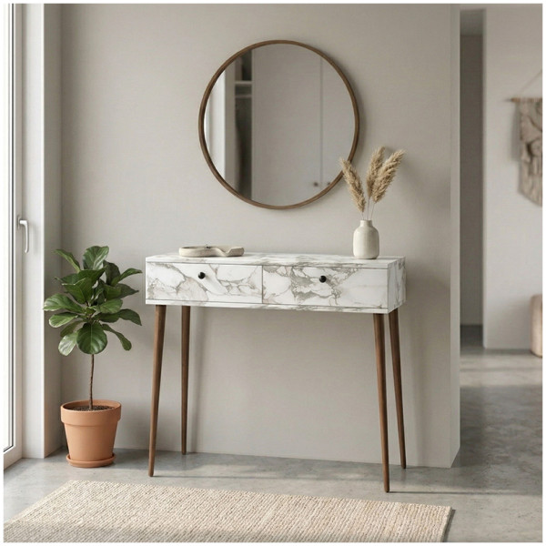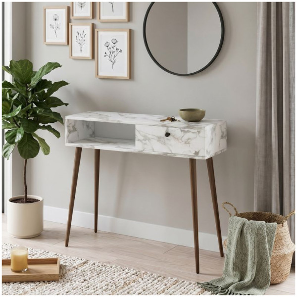 Κονσόλα Mara Megapap χρώμα travertine 90×29,6×91,8εκ. Τεχνικά χαρακτηριστικά: Χρώμα: travertine Διαστάσεις: Μήκος 90 x Βάθος 29,6 x Ύψος 91,8 εκ. Πάχος μελαμίνης: 18mm. Κατασκευασμένη από