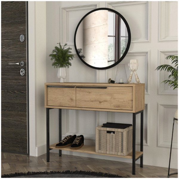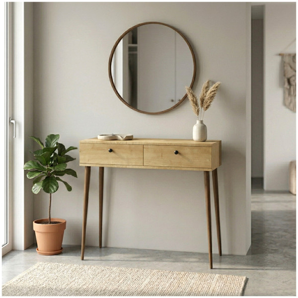 Κονσόλα με καθρέπτη Suzy Megapap χρώμα sepet oak 90×29,6×76εκ. Τεχνικά χαρακτηριστικά: Χρώμα: sepet oak Διαστάσεις: Μήκος 90 x Βάθος 29,6 x Ύψος 76 εκ.