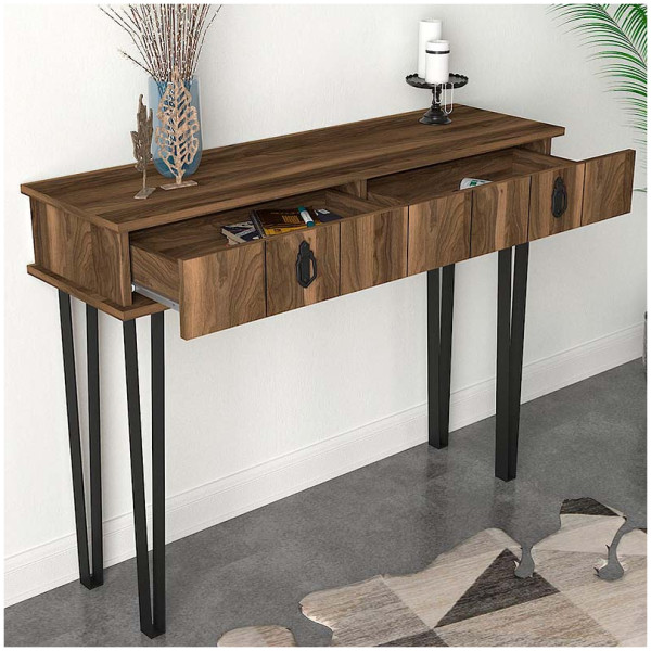 Κονσόλα μελαμίνης Helsinki Megapap χρώμα καρυδί 120×35,5×90εκ. Τεχνικά χαρακτηριστικά: Χρώμα: καρυδί Διαστάσεις: Μήκος 120 x Βάθος 35,5 x Ύψος 90 εκ. Πάχος μελαμίνης: 18mm.