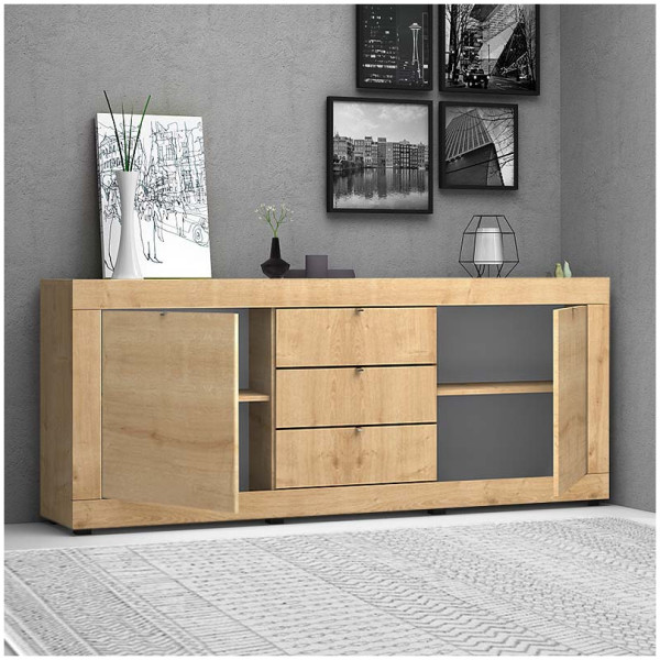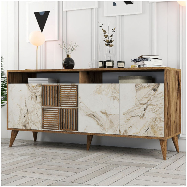 Μπουφές Naive Megapap χρώμα sapphire oak 126x40x80εκ. Τεχνικά χαρακτηριστικά: Χρώμα: sapphire oak Διαστάσεις: Μήκος 126 x Βάθος 40 x Ύψος 80 εκ. Πάχος μελαμίνης: