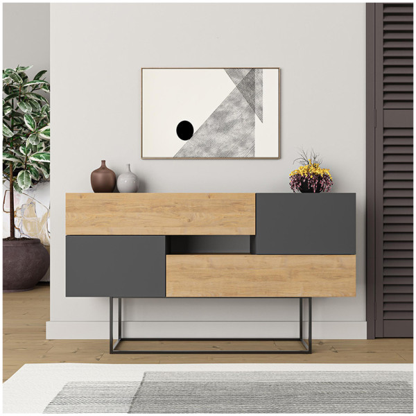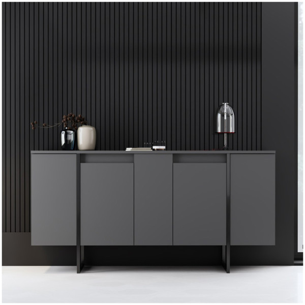 Μπουφές Luxe Megapap χρώμα ανθρακί 160x35x80εκ. Τεχνικά χαρακτηριστικά: Χρώμα: ανθρακί και λεπτομέρειες σε μαύρη απόχρωση Διαστάσεις: Μήκος 160 x Βάθος 35 x