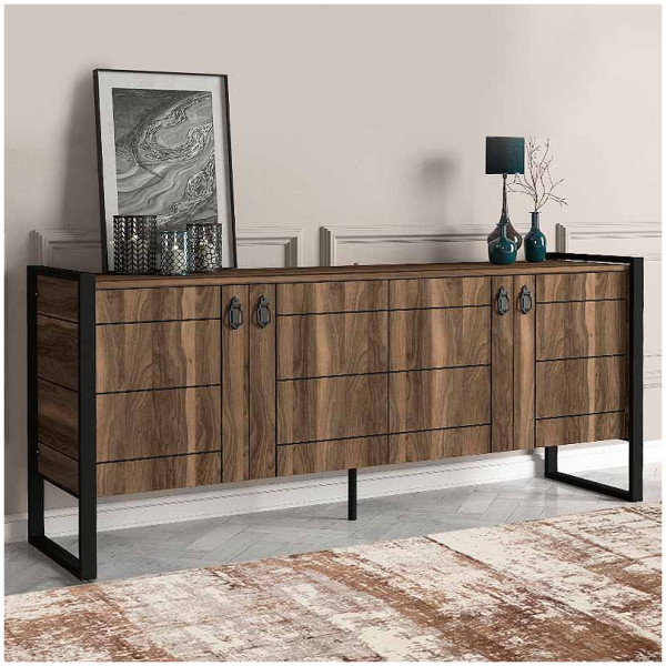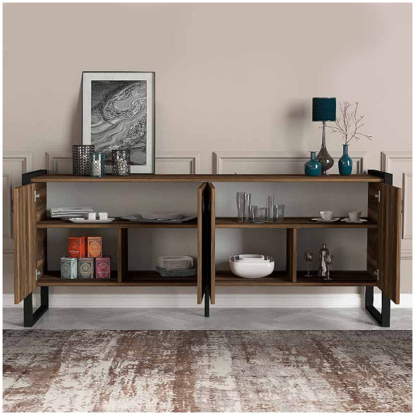 Μπουφές Milan Megapap χρώμα καρυδί – ανθρακί 180x35x78,6εκ. Τεχνικά χαρακτηριστικά: Χρώμα: καρυδί – ανθρακί Διαστάσεις: Μήκος 180 x Βάθος 35 x Ύψος 78,6 εκ.