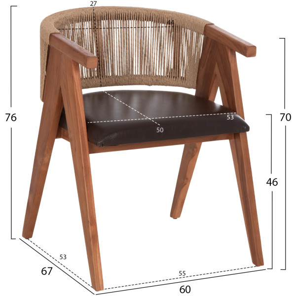ΚΑΡΕΚΛΑ ΤΡΑΠΕΖΑΡΙΑΣ DINIZ HM6554 ΞΥΛΟ TEAK ΦΥΣΙΚΟ–ΣΥΝΘ.ΣΧΟΙΝΙ 48x60x84Υεκ.