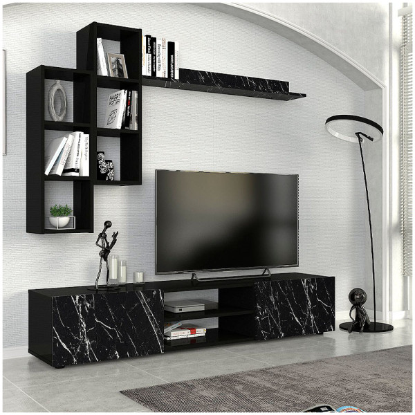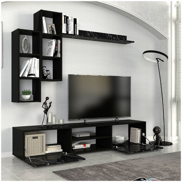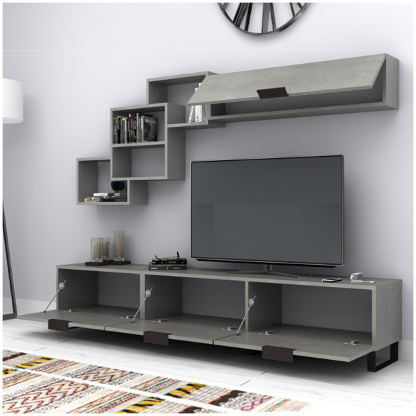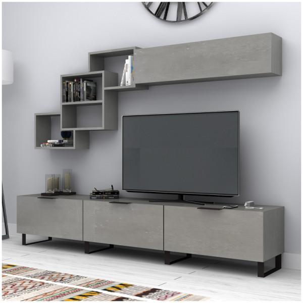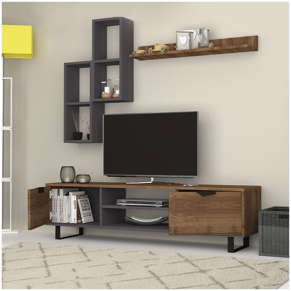 Σύνθεση τηλεόρασης Lonsa Megapap από μελαμίνη χρώμα ανθρακί 160x35x40εκ. Τεχνικά χαρακτηριστικά: Χρώμα: ανθρακί Η σύνθεση αποτελείται από ένα έπιπλο τηλεόρασης και