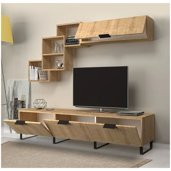 Σύνθεση τηλεόρασης Lonsa Megapap χρώμα φυσικό οξιάς 160x35x40εκ. Τεχνικά χαρακτηριστικά: Χρώμα: φυσικό οξιάς Η σύνθεση αποτελείται από ένα έπιπλο τηλεόρασης και δύο