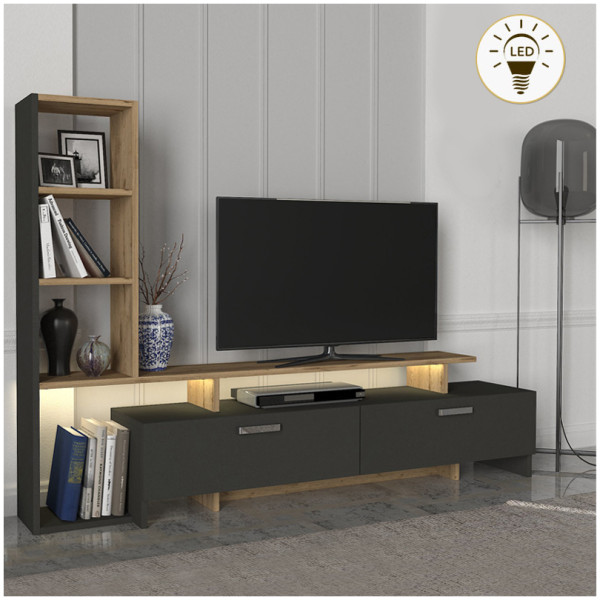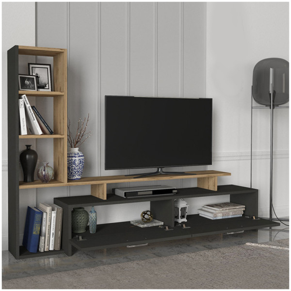 Σύνθεση τηλεόρασης Vermont Megapap χρώμα ανθρακί – sepet oak 180x40x193,8εκ. Η σύνθεση τηλεόρασης Vermont είναι ένα μοντέρνο και επιβλητικό έπιπλο με minimal