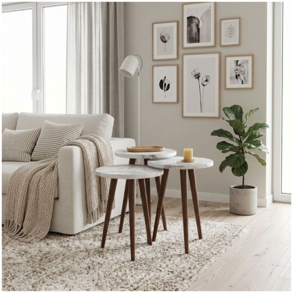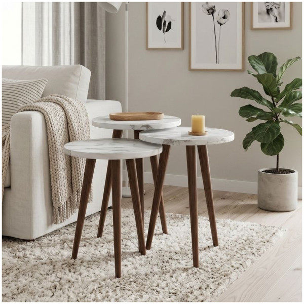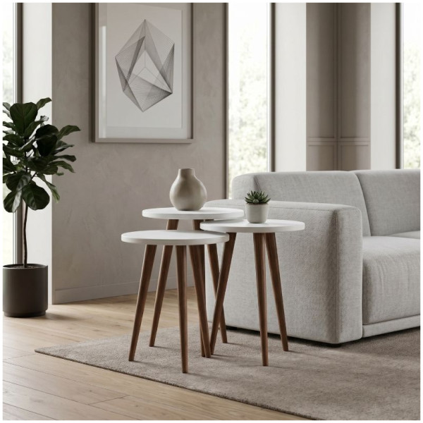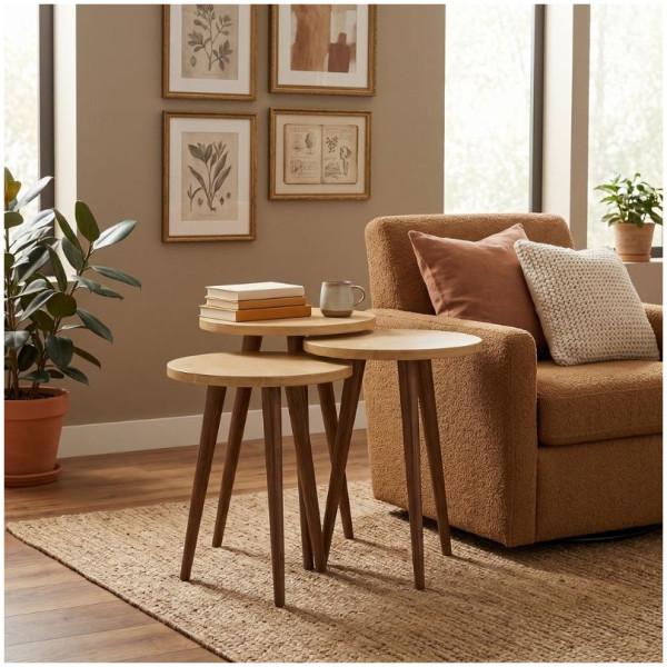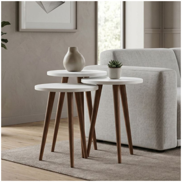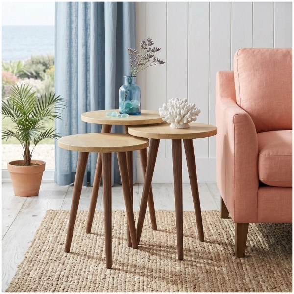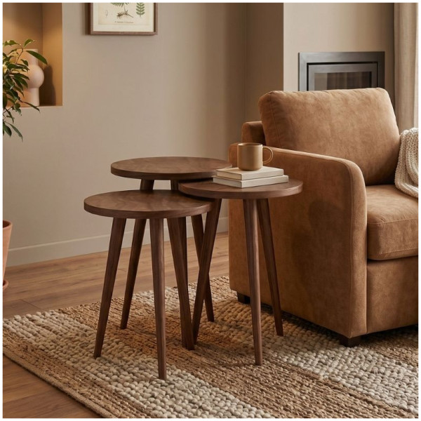 Τραπεζάκι βοηθητικό σετ 3 τμχ Cruz Megapap χρώμα sapphire oak Ø33×46εκ. Τεχνικά χαρακτηριστικά: Χρώμα: sapphire oak Διαστάσεις ψηλού τραπεζιού: Μήκος 33 x Βάθος 33 x