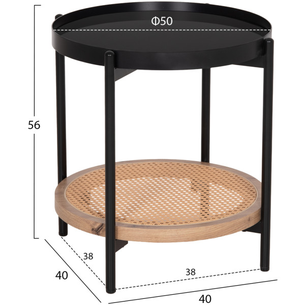 ΒΟΗΘΗΤΙΚΟ ΤΡΑΠΕΖΙ SEITZ HM18031 ΓΥΑΛΙ TOP-ΜΕΤΑΛΛΟ-RATTAN ΣΕ ΦΥΣΙΚΟ Φ50×56Υεκ.