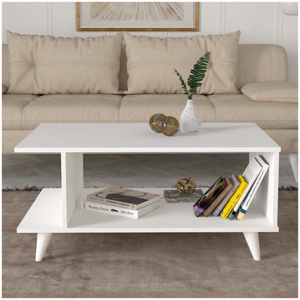 Τραπεζάκι σαλονιού Titus Megapap από μελαμίνη χρώμα λευκό 100x60x45εκ. Τεχνικά χαρακτηριστικά: Χρώμα: λευκό Διαστάσεις: Μήκος 100 x Βάθος 60 x Ύψος 45 εκ.