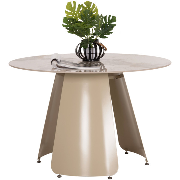 ΤΡΑΠΕΖΙ ΤΡΑΠΕΖΑΡΙΑΣ ΣΤΡΟΓΓΥΛΟ SEDAR HM18326 ΚΕΡΑΜΙΚΟ TOP–ΚΡΕΜ ΜΕΤΑΛ.ΠΟΔΙΑ Φ120×78Υ