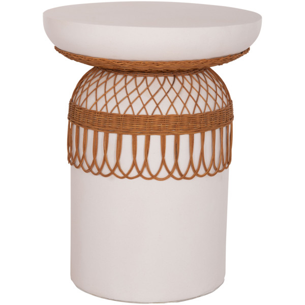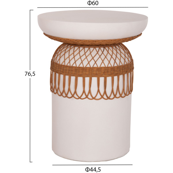ΒΟΗΘΗΤΙΚΟ ΤΡΑΠΕΖΙ PRILEP HM18159.02 FIBER CEMENT ΛΕΥΚΟ & RATTAN–Φ60×76,5Υεκ