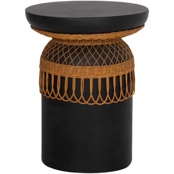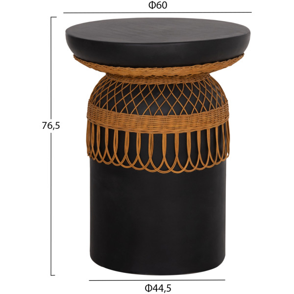 ΒΟΗΘΗΤΙΚΟ ΤΡΑΠΕΖΙ PRILEP HM18159.01 FIBER CEMENT ΜΑΥΡΟ & RATTAN–Φ60×76,5Υεκ