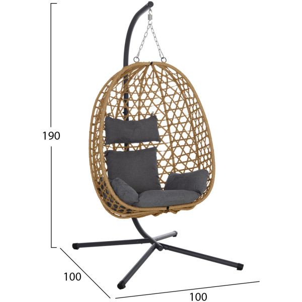 Κρεμαστή Φωλιά Μονή NESTA με Μαύρο Μεταλλικό Σκελετό και Καφέ P.E. Rattan Πλέξη Η κρεμαστή φωλιά NESTA αποτελεί μια ιδιαίτερα