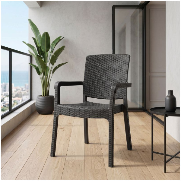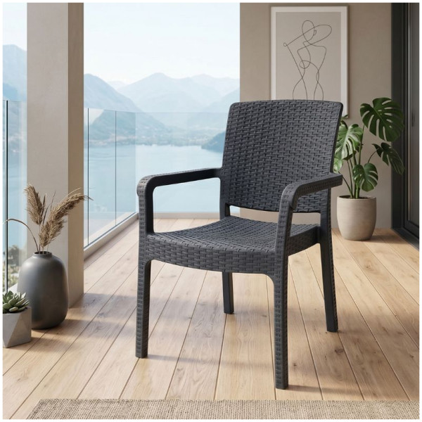 Πολυθρόνα κήπου πολυπροπυλενίου με πλέξη ραττάν χρώμα μαύρο 56x60x86,5εκ. Τεχνικά χαρακτηριστικά: Χρώμα: μαύρο Διαστάσεις: Μήκος 56 x Βάθος 60 x Ύψος 86,5 εκ. Μήκος