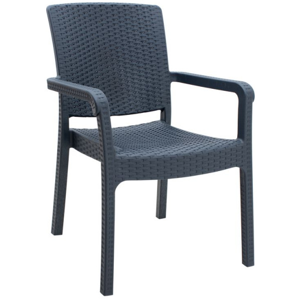 Πολυθρόνα κήπου πολυπροπυλενίου με πλέξη ραττάν χρώμα γκρι 56x60x86,5εκ. Τεχνικά χαρακτηριστικά: Χρώμα: γκρι Διαστάσεις: Μήκος 56 x Βάθος 60 x Ύψος 86,5 εκ.