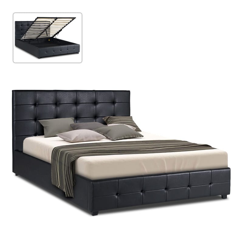Κρεβάτι Iro από τεχνόδερμα με αποθηκευτικό χώρο χρώμα μαύρο 160×200εκ.