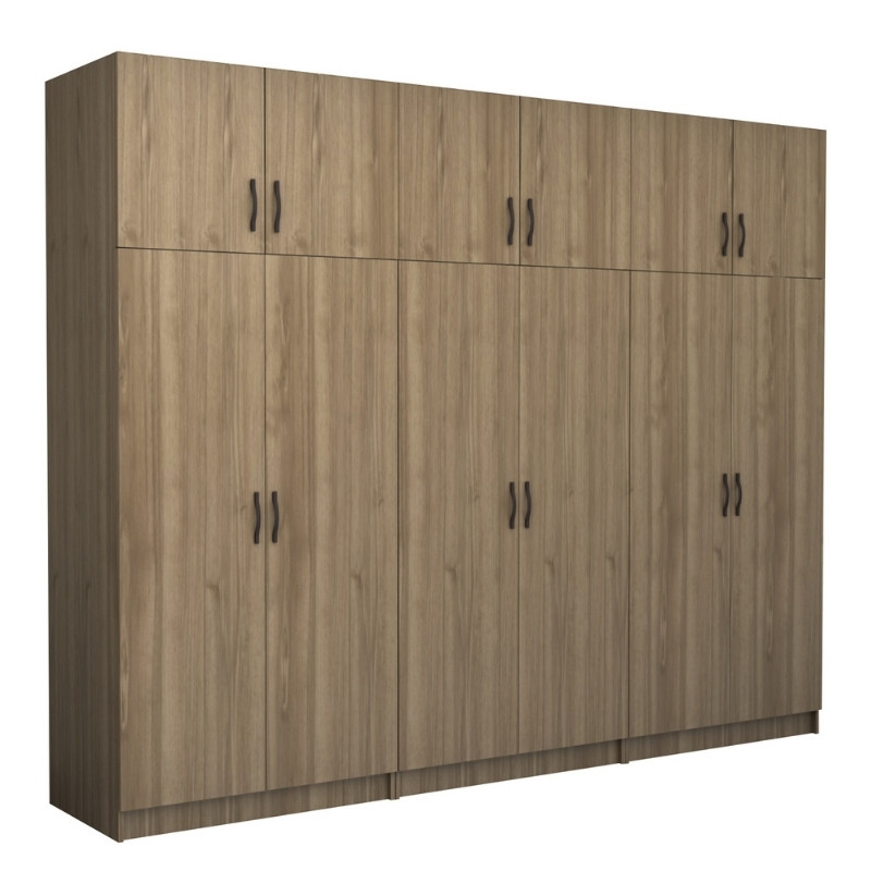 Ντουλάπα ρούχων Victoria εξάφυλλη με πατάρι χρώμα καρυδί 300x60x240εκ.