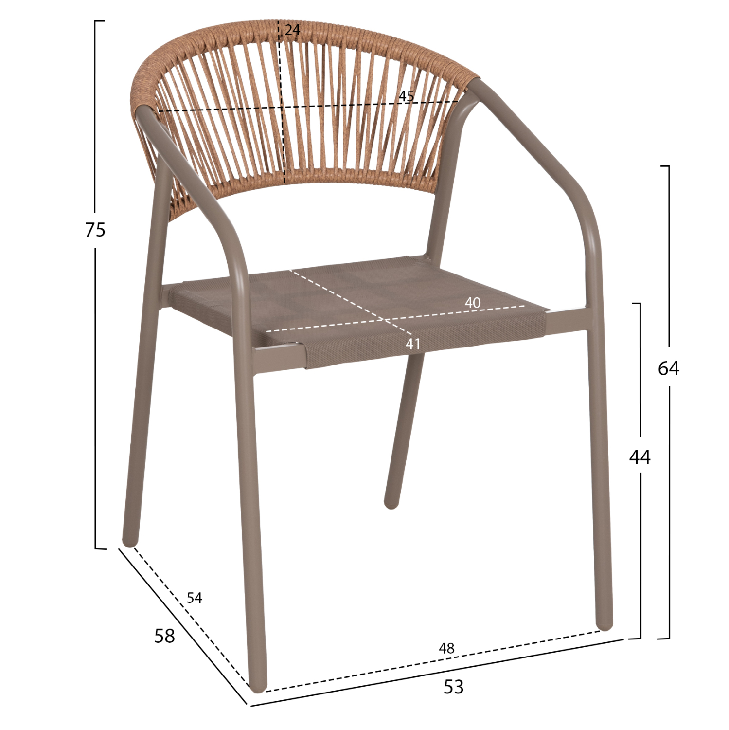 • Κομψή και πρακτική πολυθρόνα εξωτερικού χώρου, ιδανική για τραπεζαρίες κήπου, βεράντας ή επαγγελματικούς χώρους.