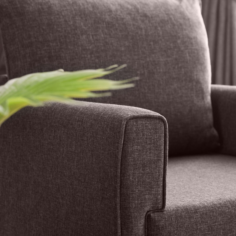 • Φέρει πόδια από πολυπροπυλένιο, ειδικά σχεδιασμένο για καναπέδες, με ξύλινη εμφάνιση σε καρυδί χρώμα.