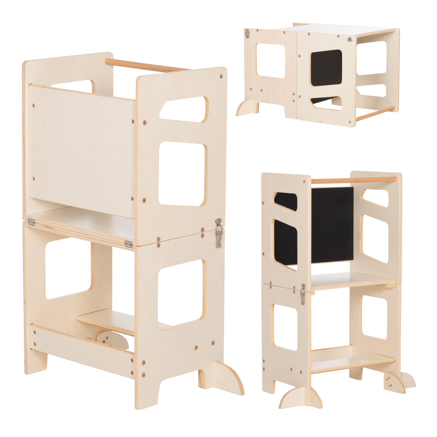 Η ενσωματωμένη επιφάνεια μαυροπίνακα μετατρέπει τον πύργο σε έναν μικρό δημιουργικό χώρο, ενισχύοντας τη φαντασία και τη μάθηση μέσα από το παιχνίδι.