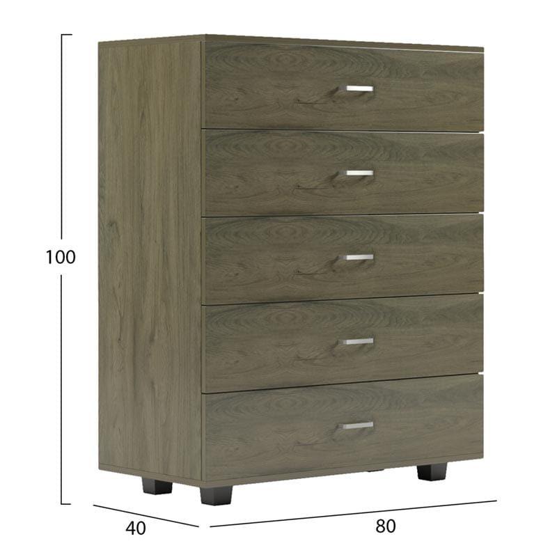 Η THORG είναι μια μεγάλη συρταριέρα με 5 φαρδιά συρτάρια που θα ικανοποιήσει όλες τις ανάγκες σας. Έχει ουδέτερο DARK OLIVE χρώμα με χερούλια σε ασημί απόχρωση. Τα μαύρα ποδαράκια της συρταριέρας, είναι σταθερά και φαρδιά προσφέροντας στιβαρότητα στην κατασκευή και ταυτόχρονα δημιουργούν μια ευχάριστη διχρωμία με το κυρίως σώμα της συρταριέρας.